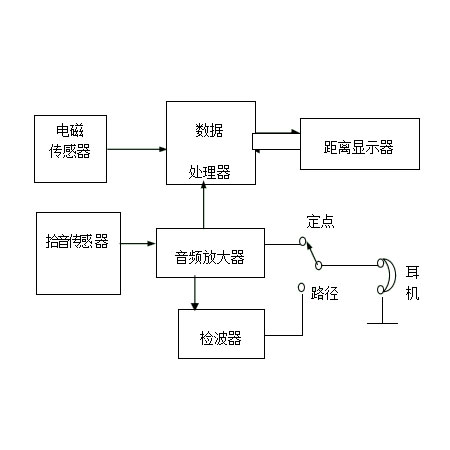 3、音頻放大器可放大拾音傳感器拾取的微弱地震波信號,由耳機監(jiān)聽其大小,配合顯示屏數(shù)據(jù)精確定點。如果地震波太弱,形不成計數(shù)中斷信號,距離顯示器將自動發(fā)出中斷信號使其滿亮顯示99.9米。